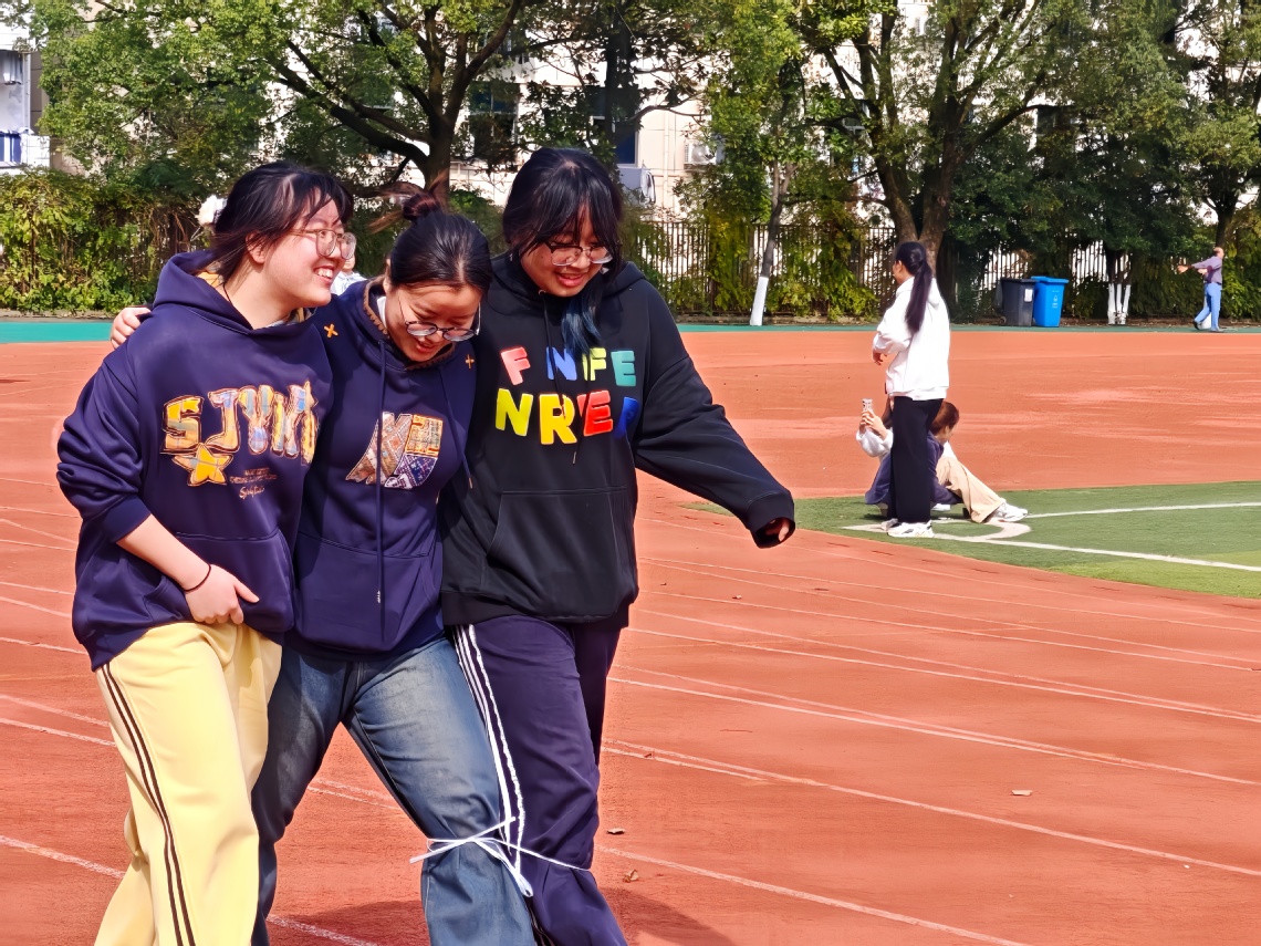 活动别出心裁地设置了“你比我猜”、“三人四足”和“夹球跑”三大趣味竞赛关卡。不仅是对参赛同学身体素质的锻炼,更是对其沟通配合与团队协作能力的综合考验。活动现场,各环节衔接紧凑,趣味横生。“你比我猜”考验默契,“三人四足”彰显团结,“夹球跑”挑战技巧与平衡。同学们全情投入,场上欢呼声、助威声此起彼伏,气氛热烈。工作人员则坚守岗位,保障了活动的顺畅与安全。经过欢乐而激烈的角逐,最终由刘紫芸、陈安琪、梁乐乐组成的第八组凭借出色发挥,荣获冠军。