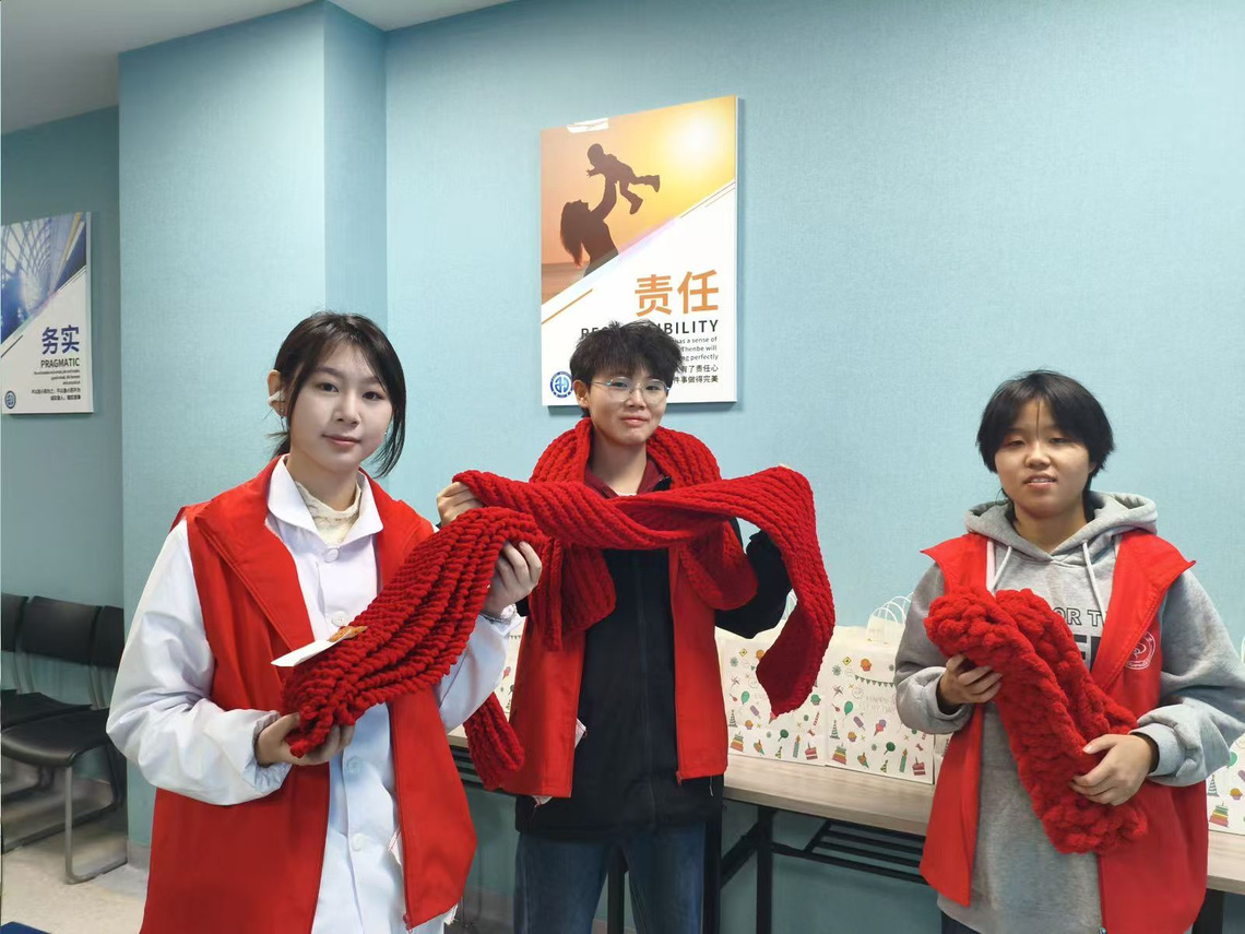 趣味手指操教学环节将活动气氛推向高潮。志愿者们俯身为患者示范动作,手把手指导手腕、手指的活动要领,不仅帮助患者锻炼手部灵活性,更在轻松互动中潜移默化提升认知功能,病房里满是欢声笑语。活动尾声,志愿者们将手工围巾逐一佩戴在患者颈间,送上真挚祝福,驱散了秋日残余寒意,为病房增添浓浓温情。