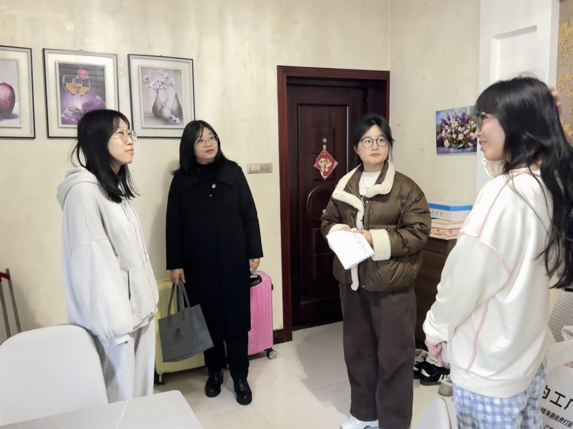 本次走访行动覆盖面广、针对性强,三个小组分头走访了分布在18个小区的31户住所,亲切看望了53名实习生。走访过程中,领导与老师们不仅细致排查用电、燃气、消防及周边治安等安全隐患,叮嘱学生牢固树立安全意识,更与同学们促膝谈心,关心其身心状况、实习进展与日常生活,倾听他们在适应社会、平衡学业与工作中的困惑。针对学生普遍关注的职业发展问题,走访小组现场提供了耐心的就业指导与规划建议;对于个别学生的实际困难,则现场协调解决,切实为大家排忧解难。