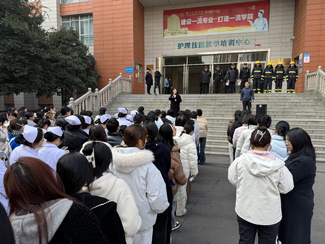 随着模拟烟雾的升起,疏散逃生演练正式拉开帷幕。各区域引导员与安全员迅速就位,组织师生从教室、实验室、办公室等不同区域分区、分批疏散。参与师生沉着冷静,用湿毛巾或湿纸巾捂住口鼻,采取低姿弯腰的方式,沿着预定逃生路线快速、有序地向楼外安全地带——八号楼前广场撤离。整个疏散过程紧张而不慌乱,高效有序。